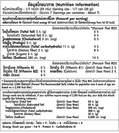 ข้อมูลสำหรับผู้แพ้อาหาร : มีถั่วเหลืองและงาขาว Allergen delcaration: Contains soy bean and white sesame